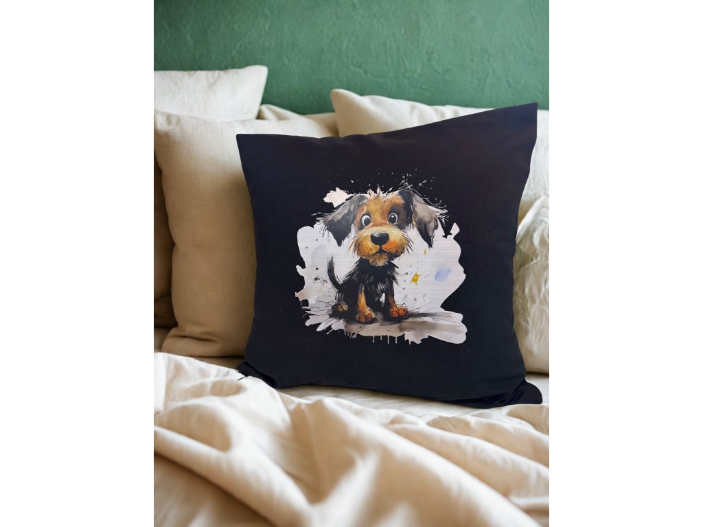 Originální povlak na polštář s roztomilým motivem chlupáče, který vykouzlí úsměv na každé tváři. Skvěle se hodí např. do dětského pokoje, na pohovku či do křesla a nejlépe jako dárek pro milovníky psů.