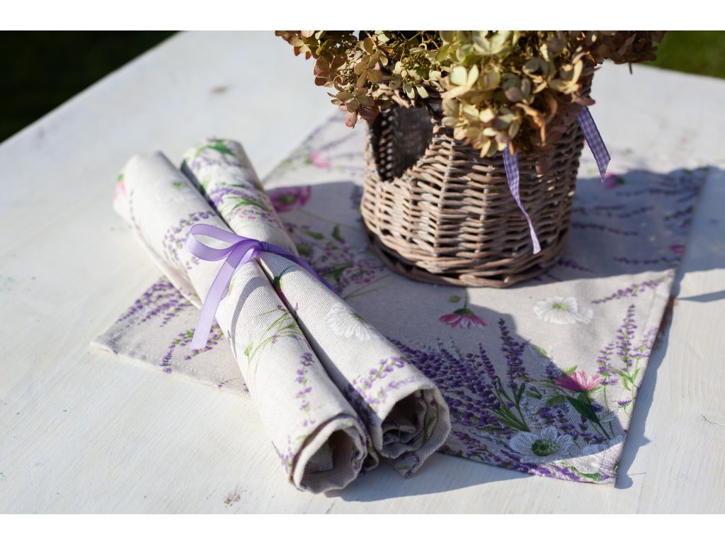 Stylový detail, který doladí každý stůl. Ručně šité prostírání z přírodní bavlny s jemným levandulovým vzorem je ideální na každodenní použití i slavnostní chvíle. Skvěle ladí s ubrusem i polštářem ze stejné kolekce.