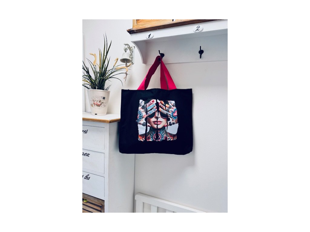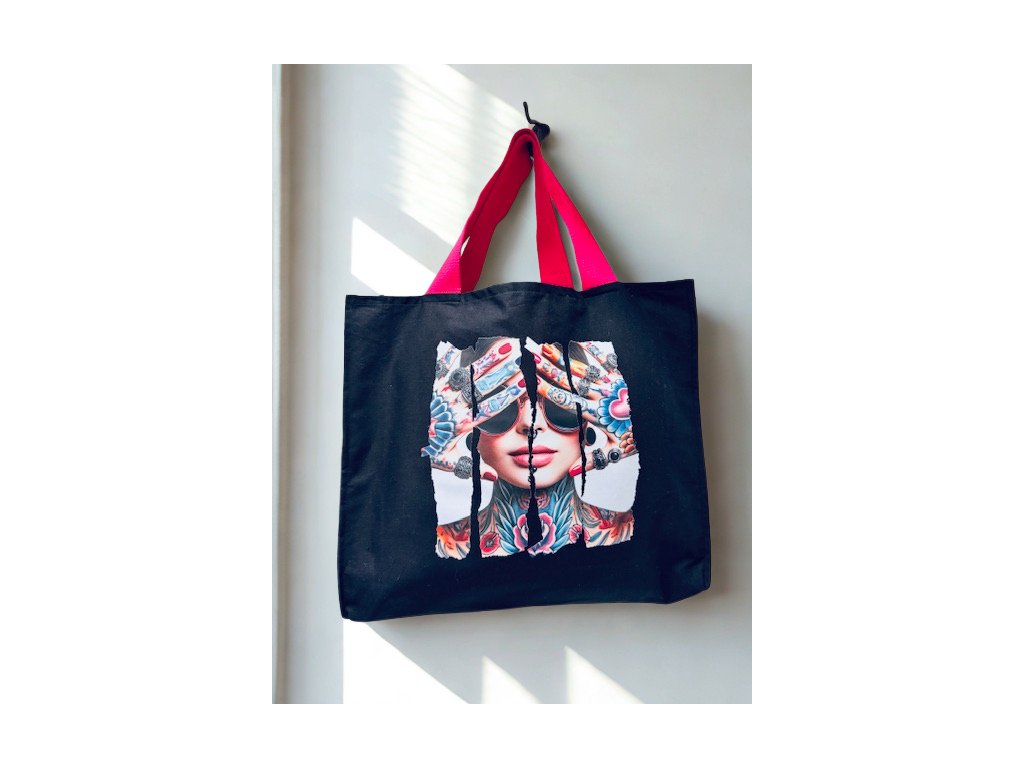 Stylová taška s výrazným motivem potetované ženy upoutá na první pohled. Perfektní společník na nákupy, do města i na pláž.